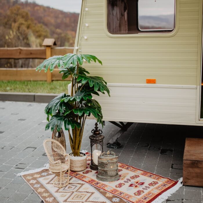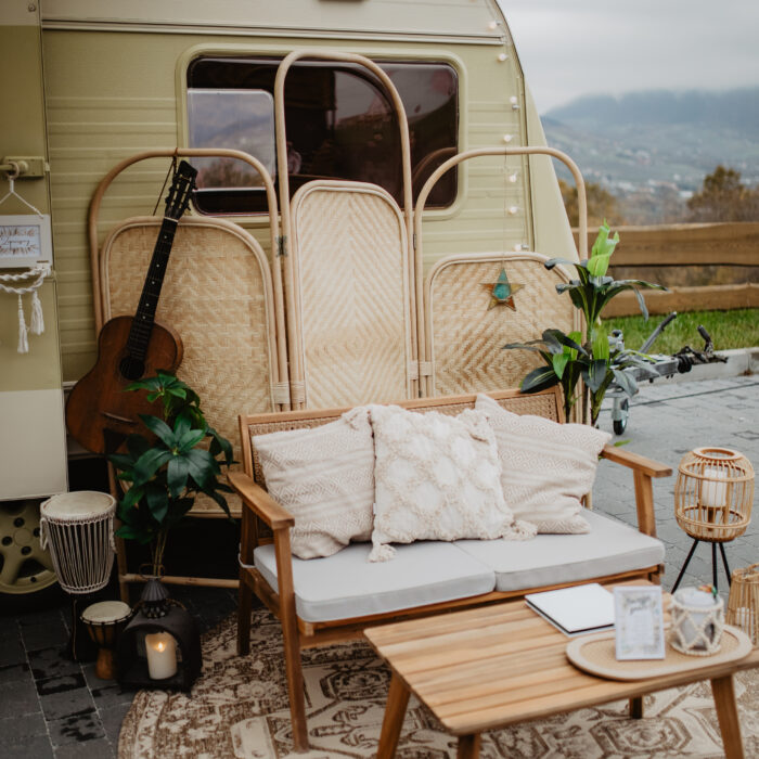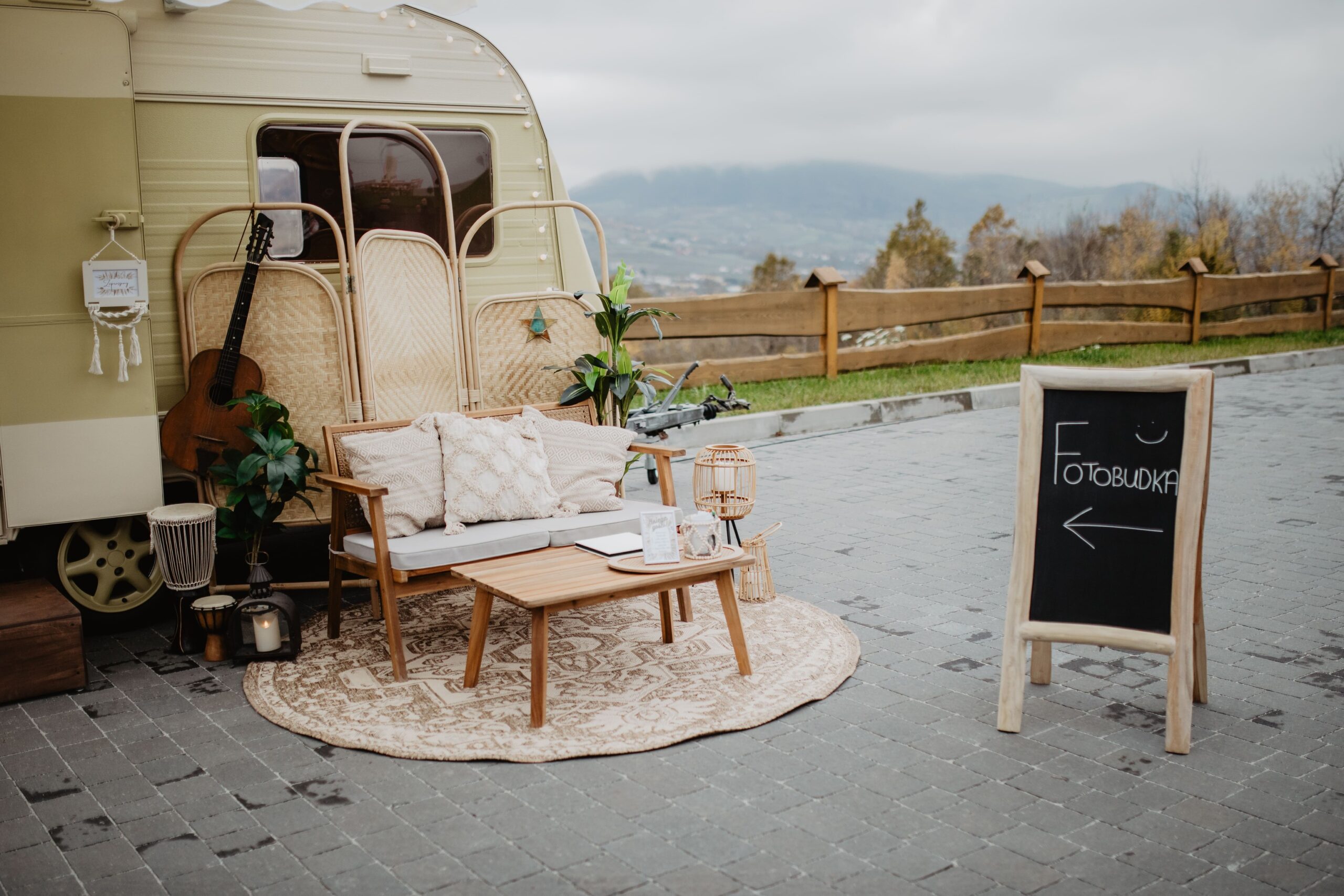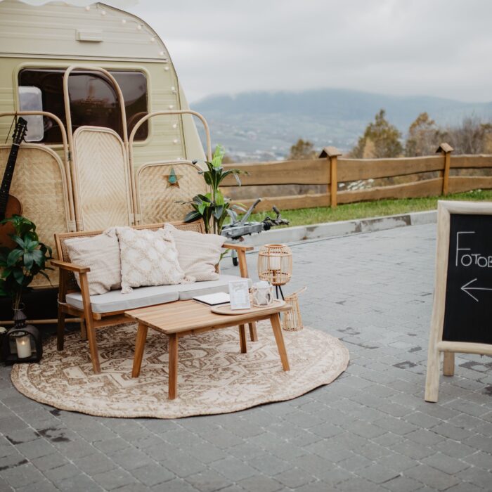 Zanurz się w niezwykłej atmosferze stylu boho dzięki naszej fotoprzyczepie! Aranżacja pełna zieleni tworzy harmonijny i naturalny klimat, a lampiony podczas zachodu słońca dodają magii chwilom, gdy zapada zmrok. Styl boho to subtelne połączenie natury, luzu i delikatnej elegancji, tworząc niepowtarzalny klimat idealny do uwiecznienia pięknych chwil. Wprowadź do swojego wydarzenia nutę boho, aby stworzyć niezapomniane wspomnienia!
