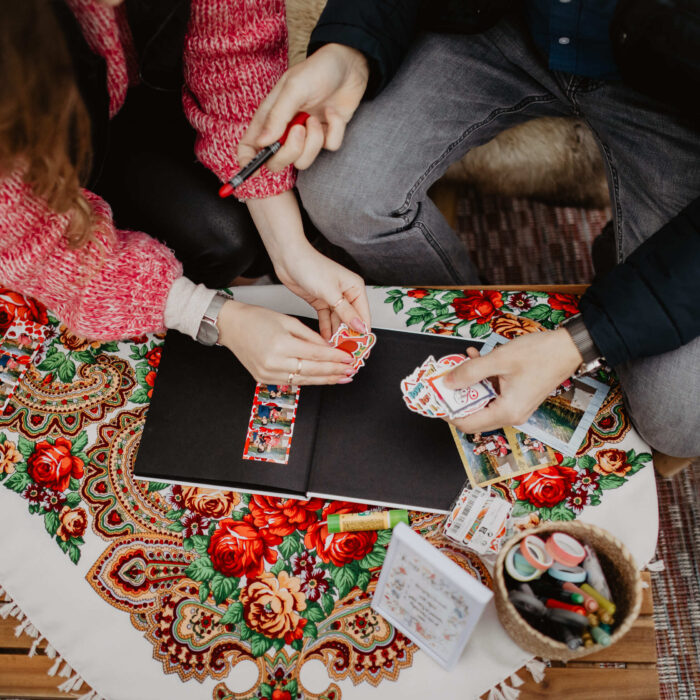 Naklejki, markery i pełen zestaw narzędzi do personalizacji - wszystko, co potrzebne, by ozdobić zdjęcia i wkomponować w nie życzenia, tworząc niepowtarzalną pamiątkę.